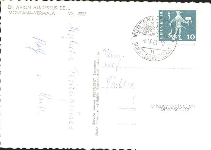 11635504 alte Postkarte Montana-Vermala Fliegeraufnahme mit Alpenpanorama postalisch gelaufen Erhaltung siehe scans KatCode: 11470230740646
