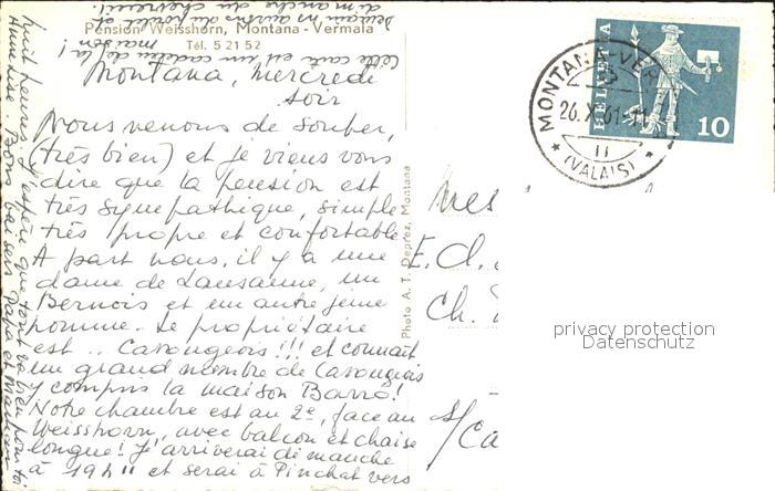 11745732 alte Postkarte Montana-Vermala Pension Weisshorn postalisch gelaufen Erhaltung siehe scans KatCode: 11470230740646