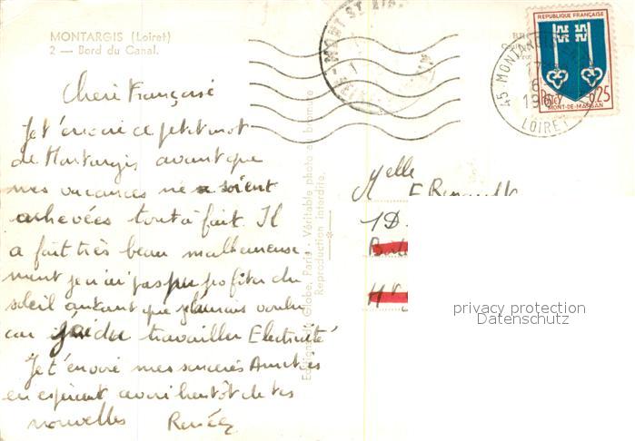 13640325 Montargis Loiret Bord du Canal postalisch gelaufen Erhaltung siehe scans [FriedD77] carte postale Frie Katcode 11170045145208