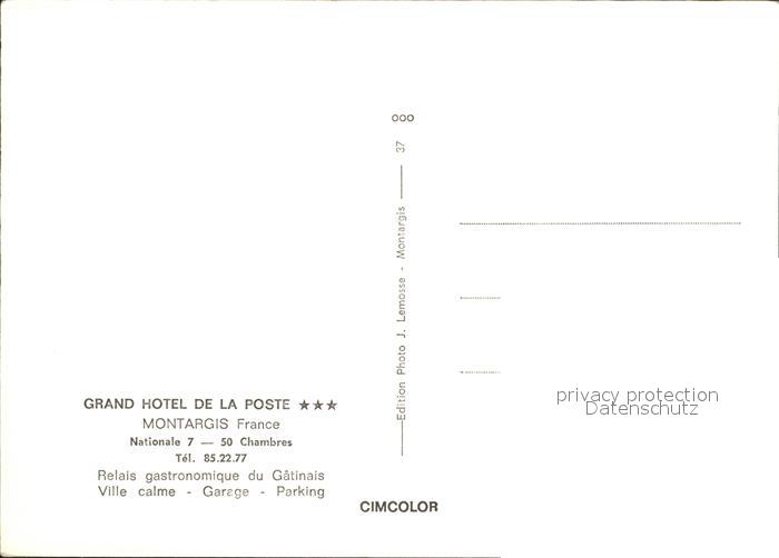 12482522 Montargis Loiret Grand Hotel de la Poste postalisch nicht gelaufen Erhaltung siehe scans KatCode: 11170045145208