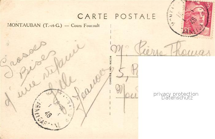 13577355 carte postale Montauban Tarn-et-Garonne Cours Foucault postalisch gelaufen Erhaltung siehe scans [WerneD78] KatCode: 11170082282121