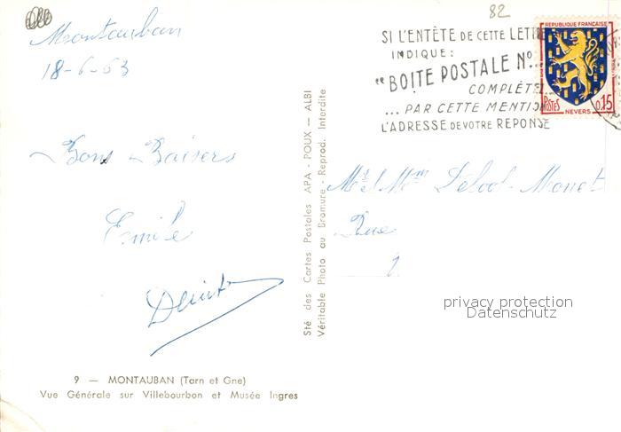 13526200 carte postale Montauban Tarn-et-Garonne Vue Generale sur Villebourbon et Musee Ingres postalisch gelaufen Erhaltung siehe scans [FriedD77] KatCode: 11170082282121