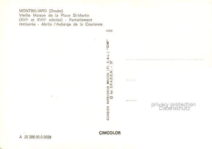 13355959 Montbeliard Vieille Maison de la Place Saint Martin Auberge de la Couronne postalisch nicht gelaufen Erhaltung siehe scans [FriedD77] KatCode: 11170025225388