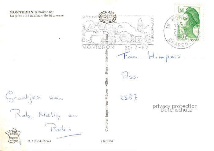 12687378 carte postale Montbron La place et maison de la presse postalisch gelaufen Erhaltung siehe scans [FriedD77] KatCode: 11170016116223