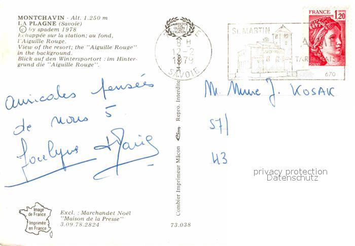 12663711 carte postale Montchavin Panorama Aiguille Rouge en hiver postalisch gelaufen Erhaltung siehe scans [FriedD77] KatCode: 11170073173038