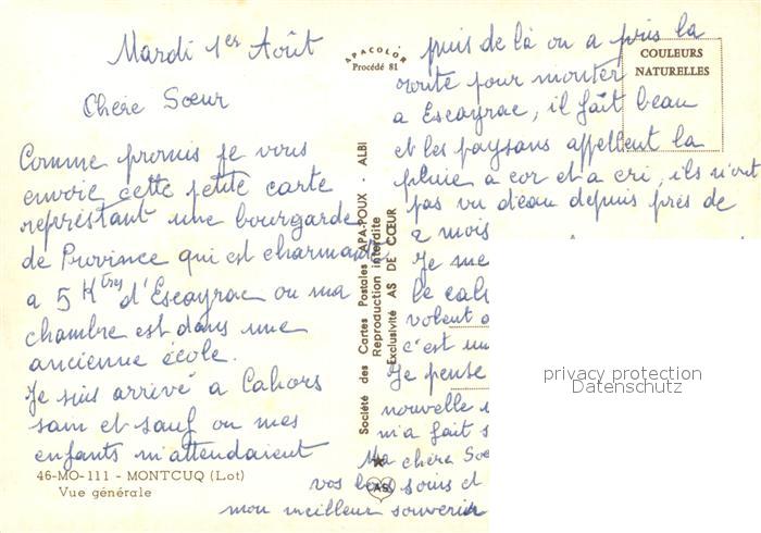 13581176 Montcuq Vue Generale postalisch nicht gelaufen Erhaltung siehe scans [FriedD77] KatCode: 11170046146201