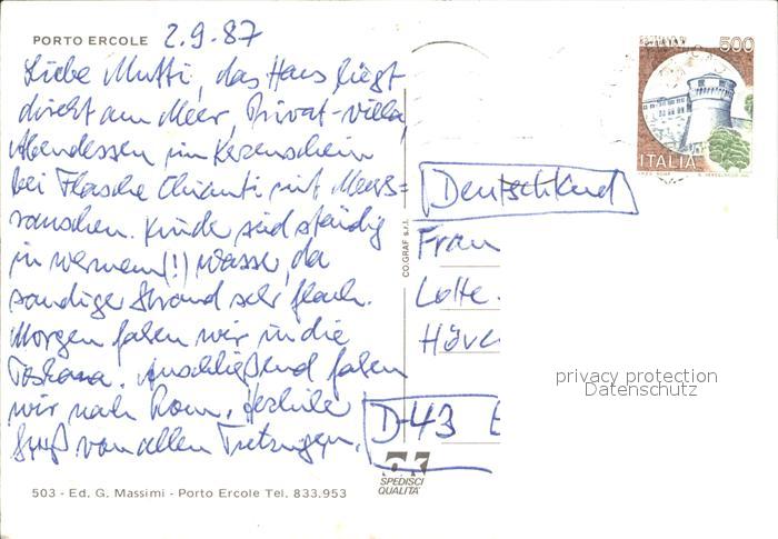 old postcard Monte Argentario Porto Ercole postalisch gelaufen Erhaltung siehe scans