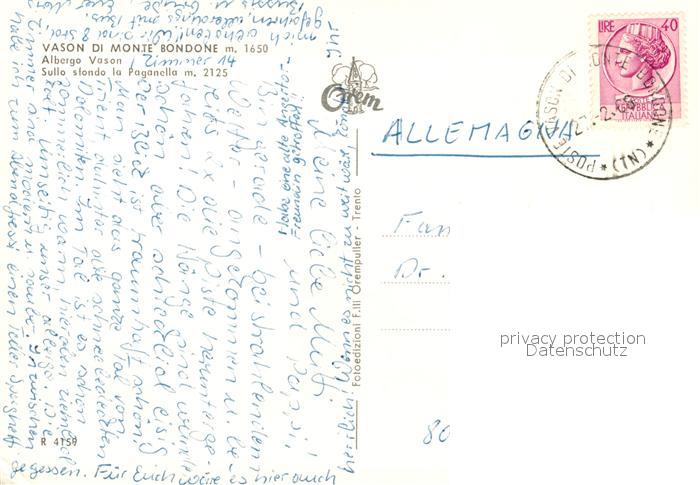 13329921 Monte Bondone Albergo Vason postalisch gelaufen Erhaltung siehe scans [KathaD81] old postcard Kath Katcode 11240