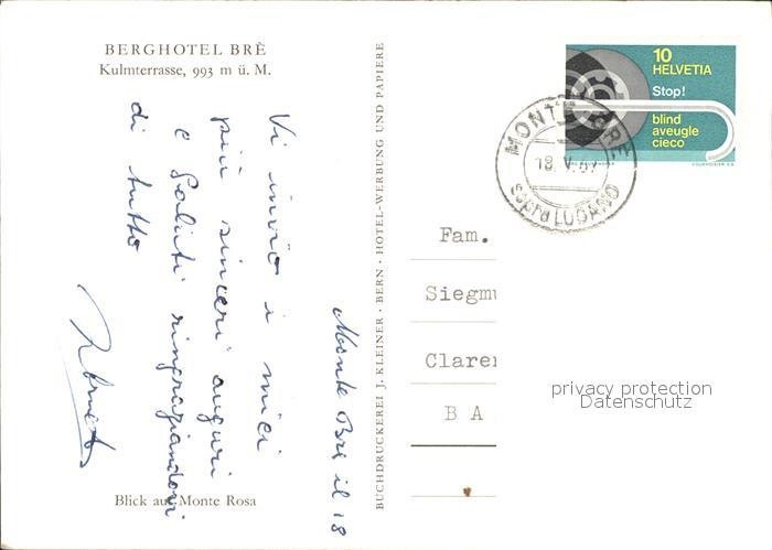 11818981 alte Postkarte Monte Bre Lugano Berghotel Bre Kuenstlerkarte postalisch gelaufen Erhaltung siehe scans KatCode: 11470470705970