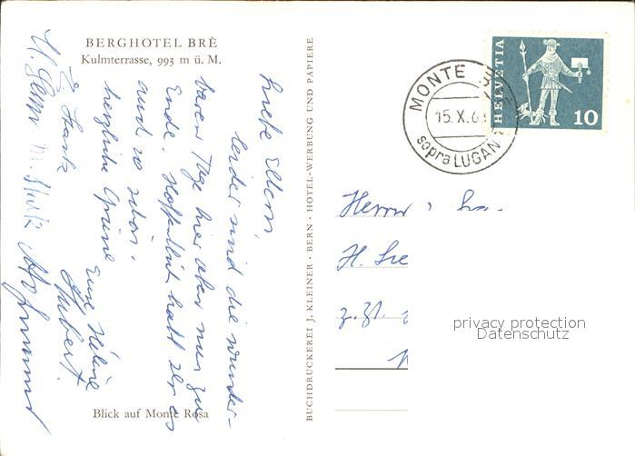 11853578 alte Postkarte Monte Bre Lugano Berghotel Bre Kulmterrasse postalisch gelaufen Erhaltung siehe scans KatCode: 11470470705970