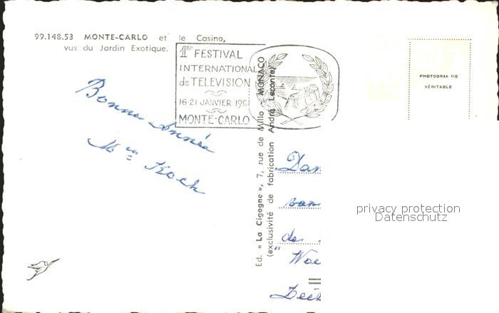 old postcard Monte-Carlo Casino vu du Jardin Exotique postalisch gelaufen Erhaltung siehe scans