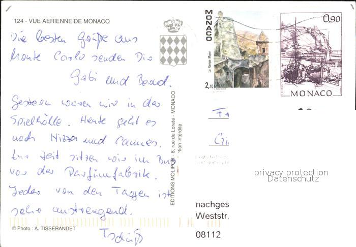 old postcard Monte-Carlo Fliegeraufnahme postalisch gelaufen Erhaltung siehe scans [LiesaD40]
