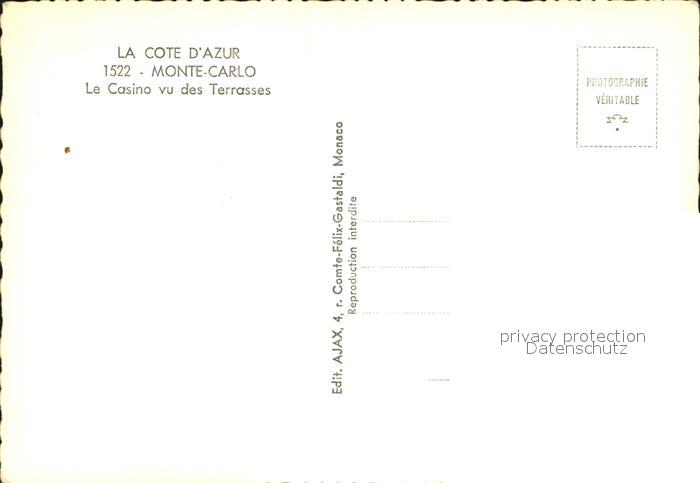 Monte-Carlo Le Casino vu des Terrasses postalisch nicht gelaufen Erhaltung siehe scans