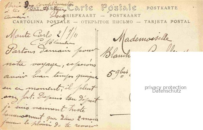 74128487 old postcard MONTE-CARLO MONACO Buste de Berlioz postalisch gelaufen Erhaltung siehe scans [FriedD77] KatCode: 11350