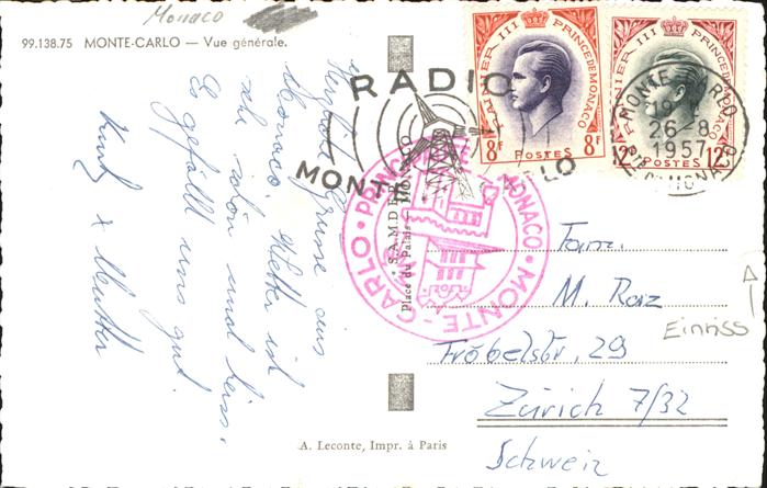 old postcard Monte-Carlo Vue generale postalisch gelaufen Erhaltung mit Maengel