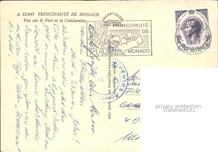 old postcard Monte-Carlo Vue sur le Port et la Condamine postalisch gelaufen Erhaltung siehe scans