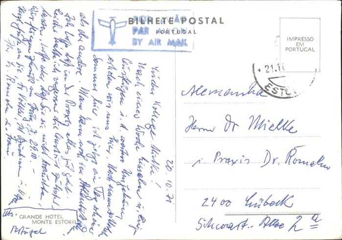 old postcard Monte Estoril Grande Hotel Swimming Pool postalisch gelaufen Erhaltung siehe scans