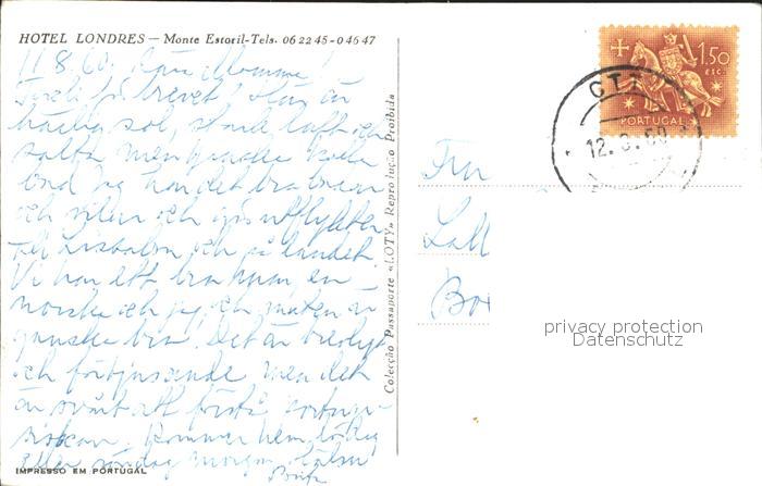old postcard Monte Estoril Hotel Londres postalisch gelaufen Erhaltung siehe scans