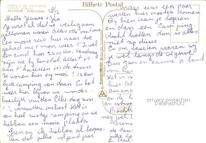 Monte Gordo Camping Strand postalisch nicht gelaufen Erhaltung siehe scans [LiesaD40]