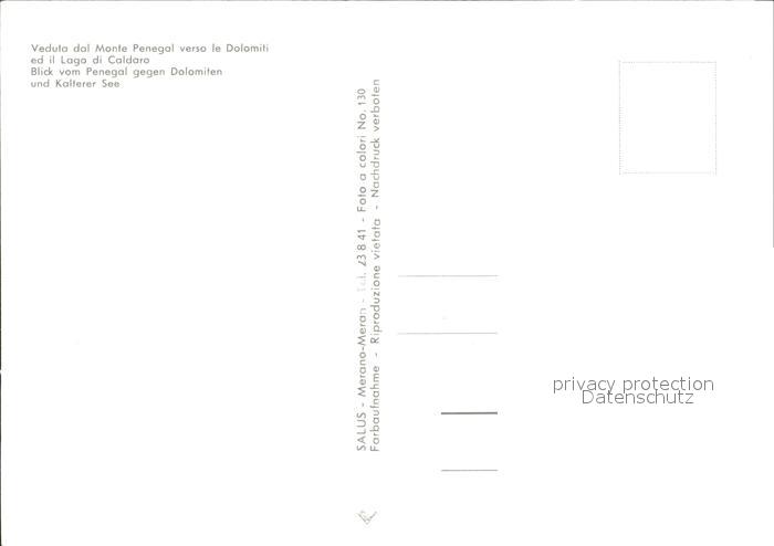 Monte Penegal mit Kaltarer See postalisch nicht gelaufen Erhaltung siehe scans