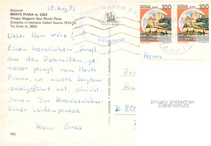 old postcard Monte Piana Dolomiten Rifugio Maggiore Bosi postalisch gelaufen Erhaltung siehe scans [LiesaD40]