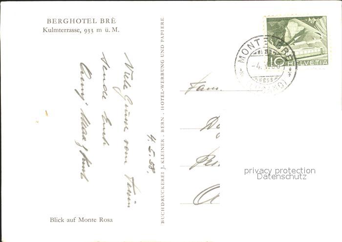 11837283 alte Postkarte Monte Rosa Berhotel Bre Kuenstlerkarte postalisch gelaufen Erhaltung siehe scans KatCode: 11470500440930