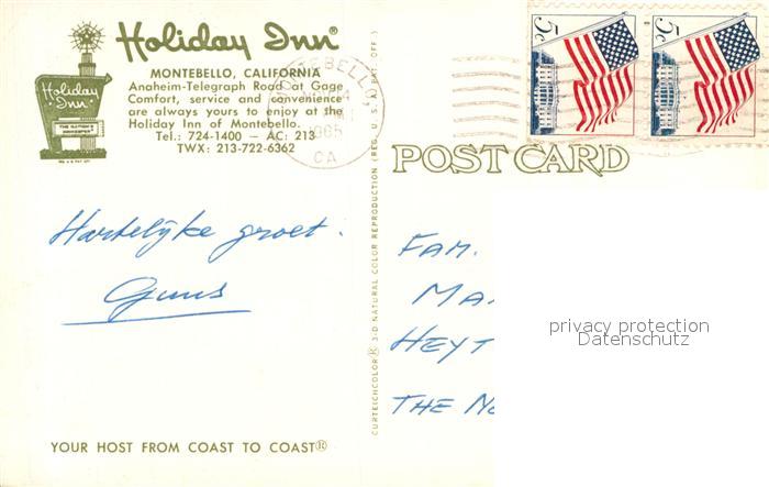 12928674 old postcard Montebello California Holiday Inn postalisch gelaufen Erhaltung siehe scans [PaolaD17] KatCode: 14140050000000