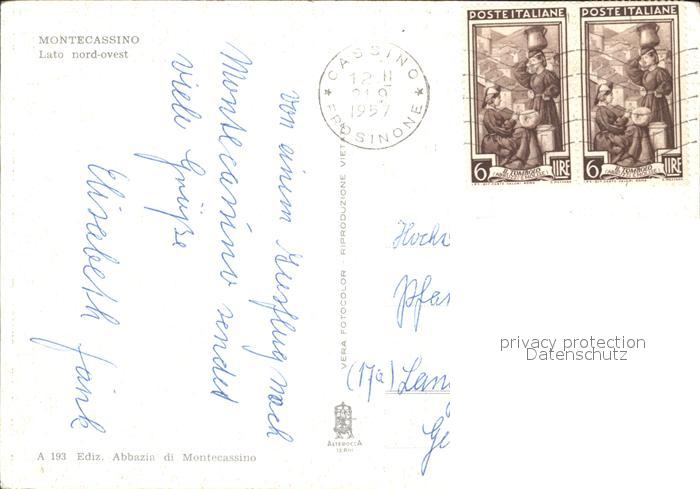 old postcard Montecassino Abbatia Kloster postalisch gelaufen Erhaltung siehe scans