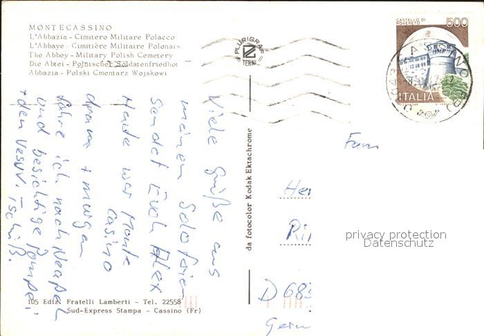 old postcard Montecassino Abbazia Cimitero Militare Polacco postalisch gelaufen Erhaltung siehe scans