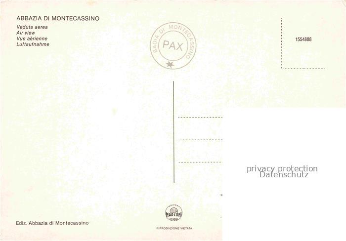 74019000 Montecassino Monte Cassino Lazio IT Abbazia veduta aerea postalisch nicht gelaufen Fliegeraufnahme Erhaltung siehe scans [FriedD77] KatCode: 11240