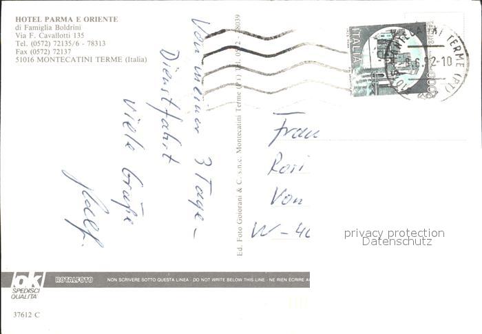 old postcard Montecatini Terme Hotel Prma e Oriente postalisch gelaufen Erhaltung siehe scans