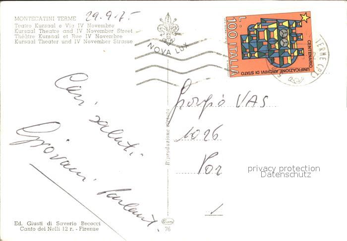 old postcard Montecatini Terme Teatro Kursaal e Via IV Novembre postalisch gelaufen Erhaltung siehe scans