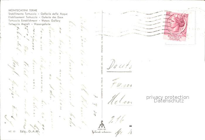 old postcard Montecatini Terme Tettuccio Anstalt Wassergalerie postalisch gelaufen Erhaltung siehe scans
