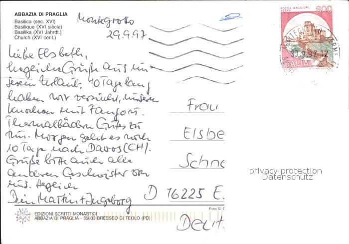 old postcard Montegrotto Terme Abbazia di Praglia Basilica postalisch gelaufen Erhaltung siehe scans