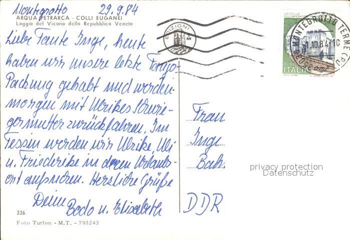 old postcard Montegrotto Terme Arqua Petrarca Colli Euganei postalisch gelaufen Erhaltung siehe scans