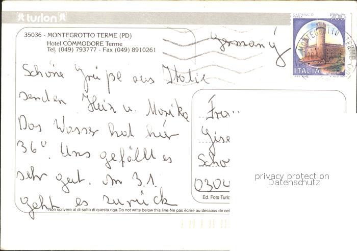 old postcard Montegrotto Terme Commodore Hotel postalisch gelaufen Erhaltung siehe scans