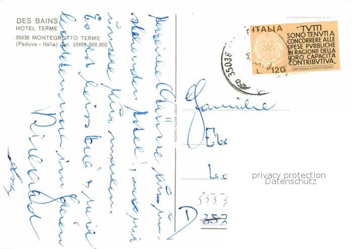 old postcard Montegrotto Terme Des Bains Hotel Terme Thermalbad postalisch gelaufen Erhaltung siehe scans [FriedD77]