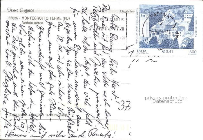 old postcard Montegrotto Terme Fliegeraufnahme postalisch gelaufen Erhaltung siehe scans