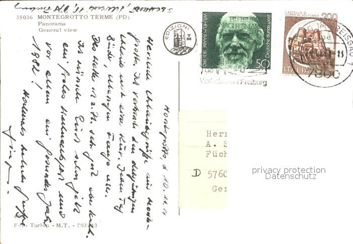 old postcard Montegrotto Terme Fliegeraufnahme postalisch gelaufen Erhaltung siehe scans
