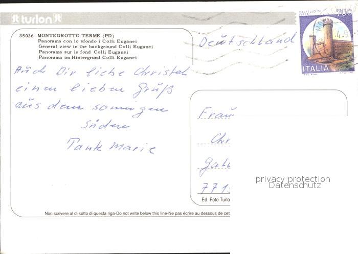 old postcard Montegrotto Terme Fliegeraufnahme postalisch gelaufen Erhaltung siehe scans