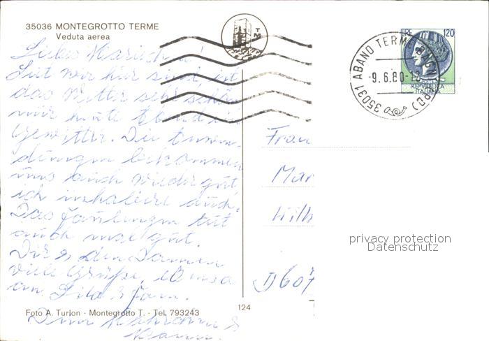 old postcard Montegrotto Terme Fliegeraufnahme postalisch gelaufen Erhaltung siehe scans