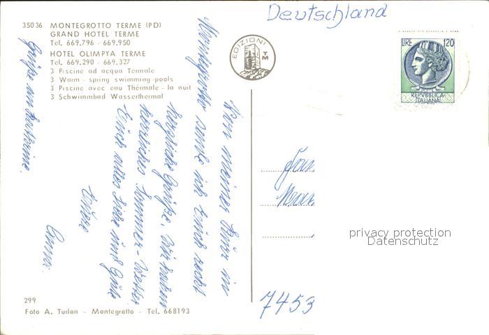 old postcard Montegrotto Terme Grand Hotel Olympia Terme postalisch gelaufen Erhaltung siehe scans