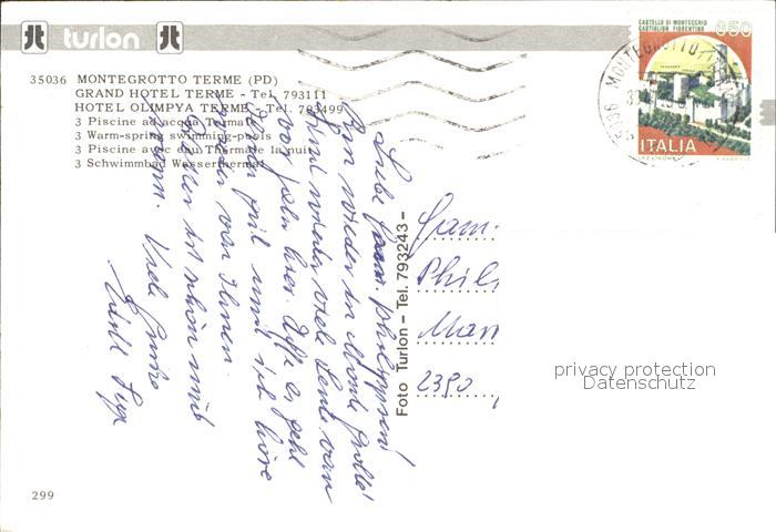 old postcard Montegrotto Terme Grand Hotel Olympia Terme Thermalschwimmbad postalisch gelaufen Erhaltung siehe scans