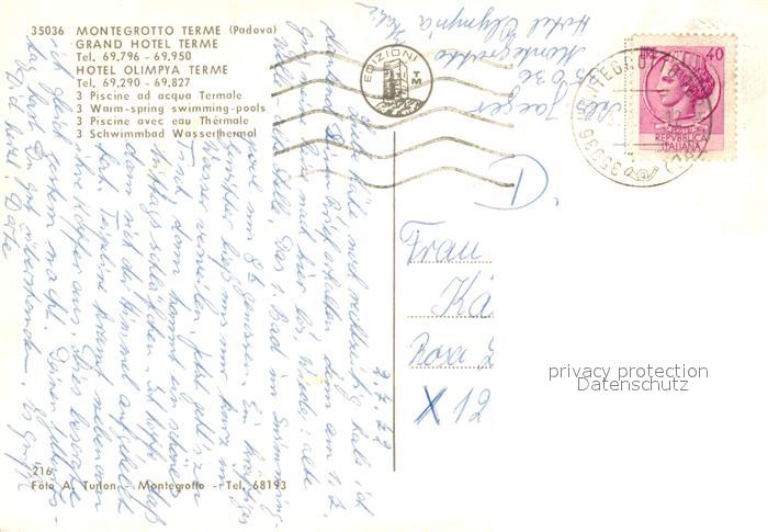 old postcard Montegrotto Terme Grand Hotel Terme postalisch gelaufen Erhaltung siehe scans [WerneD78]