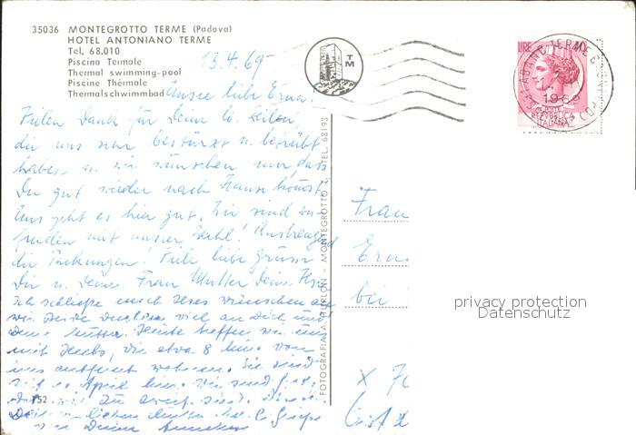 old postcard Montegrotto Terme Hotel Antoniano Terme postalisch gelaufen Erhaltung siehe scans