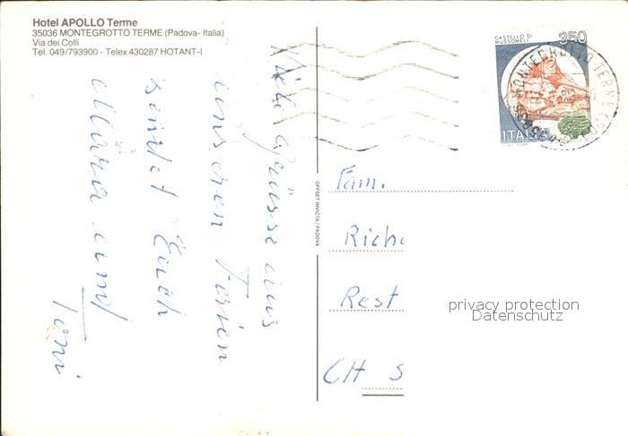 old postcard Montegrotto Terme Hotel Apollo Terme postalisch gelaufen Erhaltung siehe scans