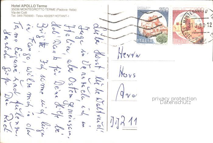 old postcard Montegrotto Terme Hotel Apollo Terme postalisch gelaufen Erhaltung siehe scans