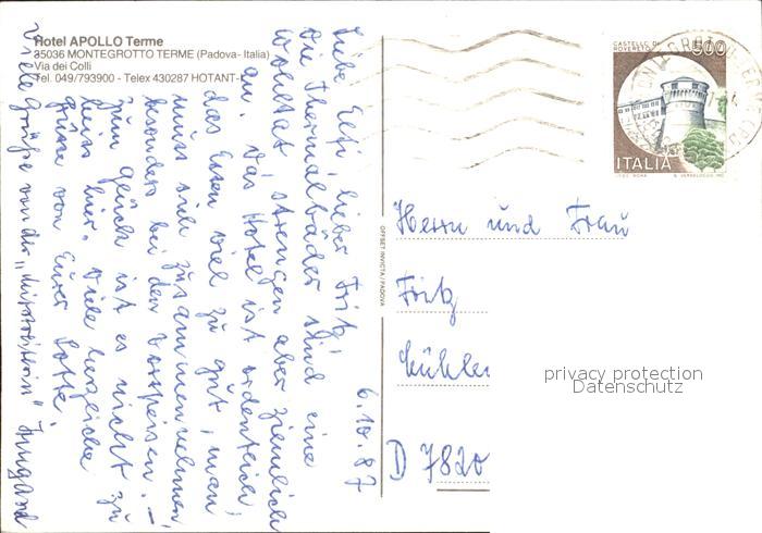 old postcard Montegrotto Terme Hotel Apollo Terme postalisch gelaufen Erhaltung siehe scans