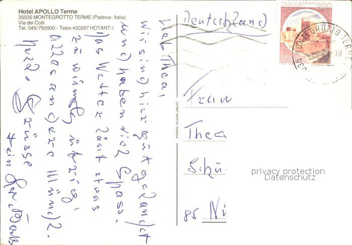 old postcard Montegrotto Terme Hotel Apollo Terme postalisch gelaufen Erhaltung siehe scans