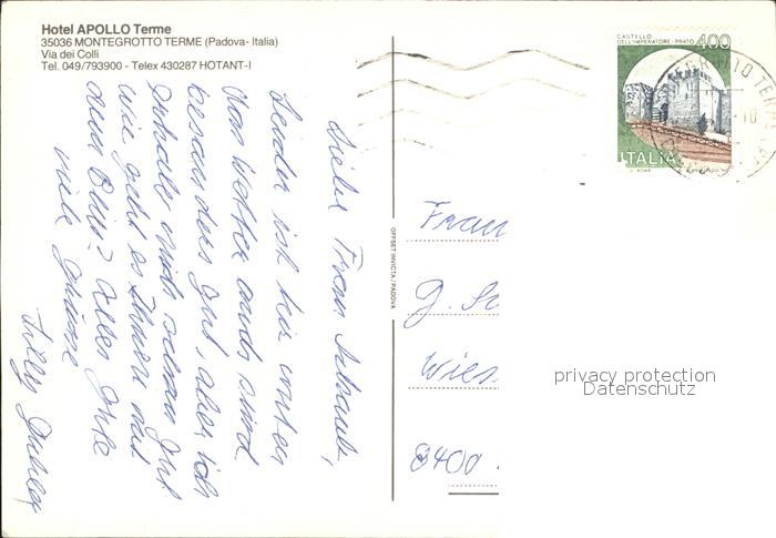 old postcard Montegrotto Terme Hotel Apollo Terme postalisch gelaufen Erhaltung siehe scans [FriedD46]